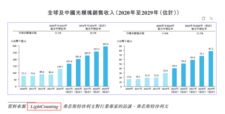 与此同时,1.6T光模块作为下一代技术,在对更高带宽、更低功耗及AI数据处理需求不断增长的推动下,有望实现爆发式增长。2024年至2029年,1.6T光模块的销售收入预计将以180.0%的复合年增长率增长。