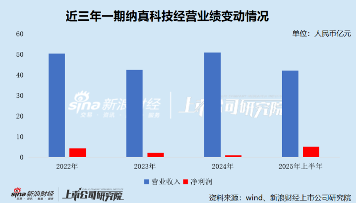 近年来,纳真科技的经营业绩波动显著。2022-2024年及2025年上半年(下称“报告期”),公司分别实现营业收入50.43亿元、42.39亿元、50.87亿元及42.16亿元,录得净利润4.29亿元、2.16亿元、0.89亿元及5.1亿元,经营性现金流量净额1.67亿元、7.99亿元、-6.16亿元及5.5亿元。